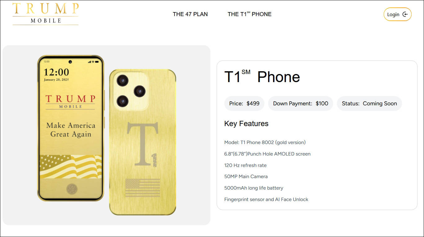 Trump Mobile最初表示,“T1”手机将于今年8月推出,并在美国制造,预订需支付100美元。