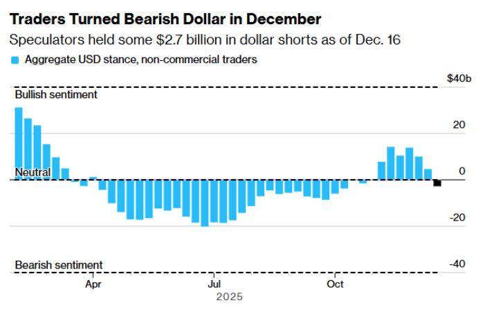 美国商品期货交易委员会截至 12 月 16 日当周的数据显示,本月美元短暂的看涨行情又转回了自 4 月份关税引发对美国经济的担忧以来一直占据主导地位的悲观情绪。