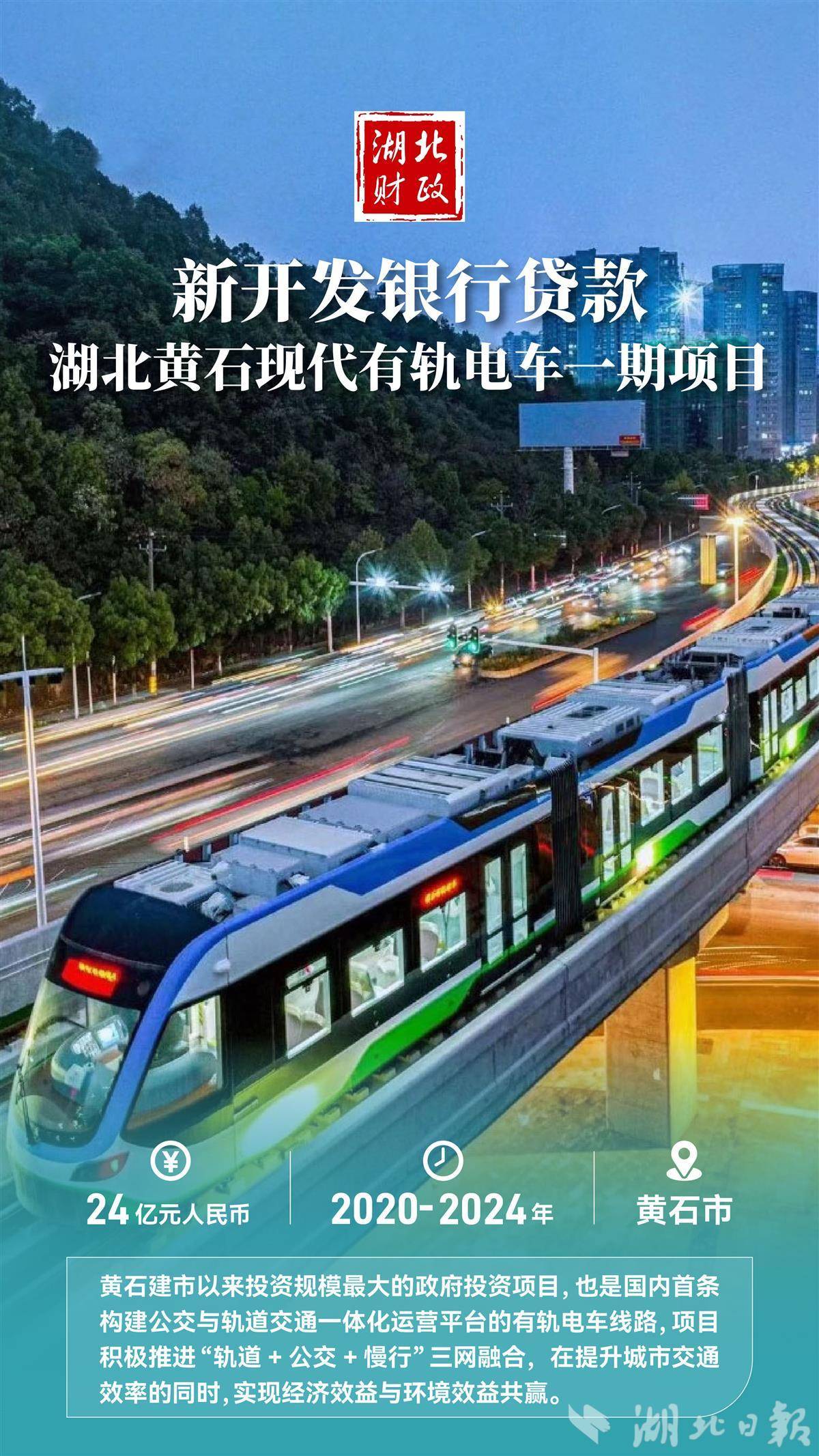 新开发银行贷款湖北黄石现代有轨电车一期项目。