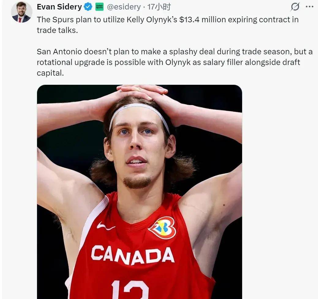 听说圣安东尼奥马刺队在本赛季调整阵容时,采取了保守策略。他们没去搞大规模的交易运作,而是打算充分利用现有的资源。像奥利尼克这样有交易潜力的球员,就变得很关键啦。不过呢,这可不代表马刺对球队现状完全满意,而是想通过更灵活的办法,为未来储备更多提升实力的可能。