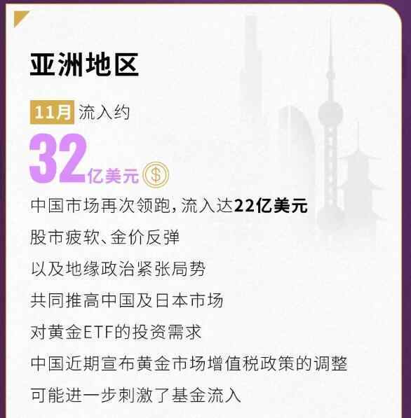 世界黄金协会数据显示,黄金投资需求持续增长,亚洲地区尤其是中国的黄金ETF流入总量持续领跑。