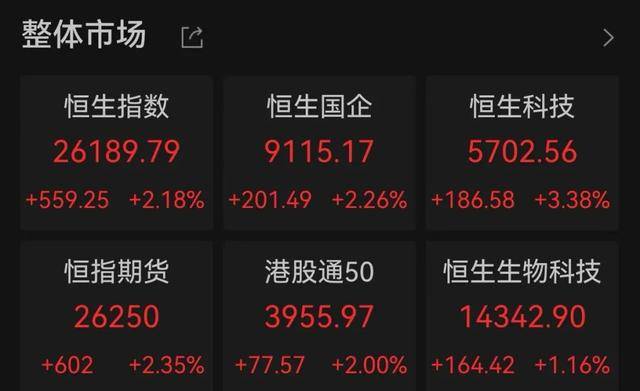 在科技股领涨下,港股市场走势强劲,三大指数上午收盘涨幅均超过2%。半导体、互联网巨头、家电、汽车等板块纷纷走强。