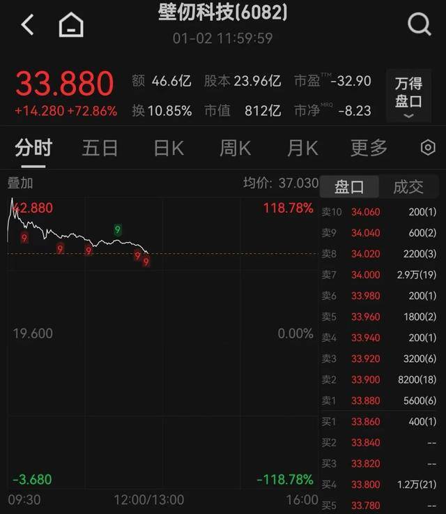“港股GPU第一股”壁仞科技今日上市,成为2026年港股市场首只上市新股。壁仞科技早盘高开后,涨幅一度超过100%,上午收盘涨72.86%。