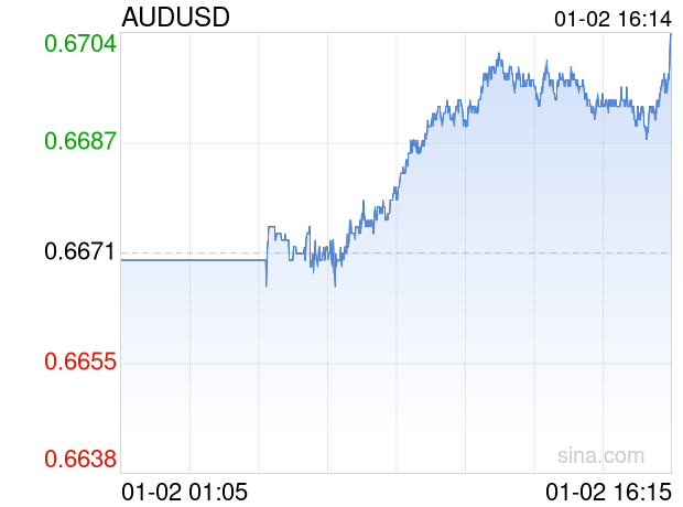 新浪外汇消息2026年01月02日,截至16时14分,外汇市场上澳元兑美元汇率突破1澳元兑换0.6705美元。涨幅为0.5097%