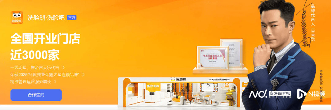 洗脸熊官网显示,其由古天乐代言,主打皮肤清洁,品牌宣称“不卖货,只洗脸”“男生女生都爱的洗脸品牌”。洗脸熊主体企业为广东爱美熊美容科技有限公司,位于广州市海珠区,该公司成立于2021年。