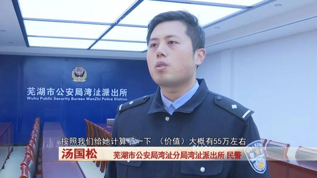 芜湖市公安局湾沚分局湾沚派出所民警 汤国松:按照当天的金价,大概在55万左右。她说买这些黄金是投资,她没有被诈骗。