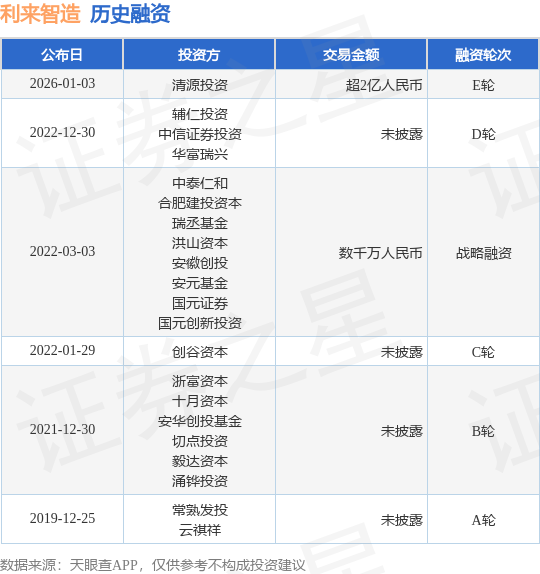 【投融资动态】利来智造E轮融资,融资额超2亿人民币,投资方为清源投资