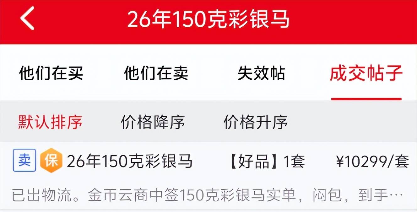 目前,发行价3985元的150克彩银马,最新成交价已经达到10299元,上涨超过6000元!