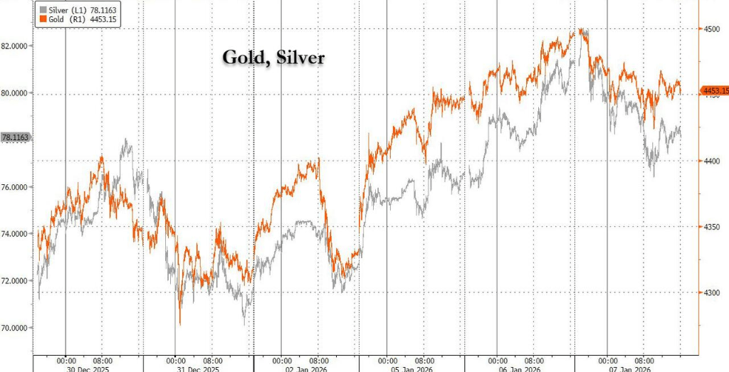 另一方面,此前连续多日表现狂热的金属市场集体降温,黄金中断了三连涨,白银跌破关键整数关口,铜价也从历史高位回落,呈现出典型的多头获利了结景象。