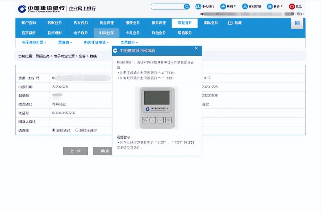 最后换复核U盾,重新登录企业网银完成复核,到这里就可以通知下家签收这张等分化票据了。