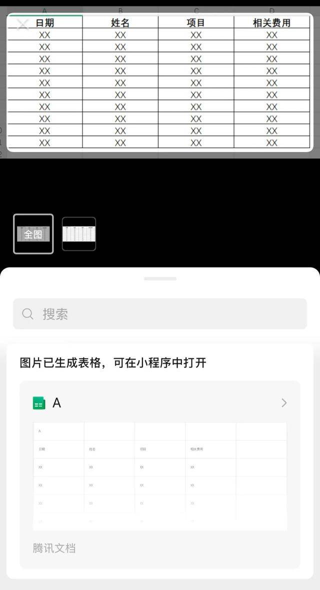 ②点击“搜一搜”,就会看到图片已被识别为在线文档,可以进行修改等操作。