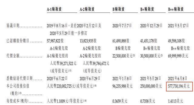 成立以来,嘉因生物进行了A-1轮、A-2轮、B轮、B+轮及B++轮融资(包括可换股贷款),并从投资者获得总投资额9.4亿元的投资。2021年6月完成B++轮融资,其投后估值为5.78亿美元。