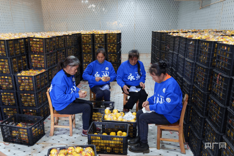 村民在打包黄金贡柚(央广网发 蒋彦斌 摄)