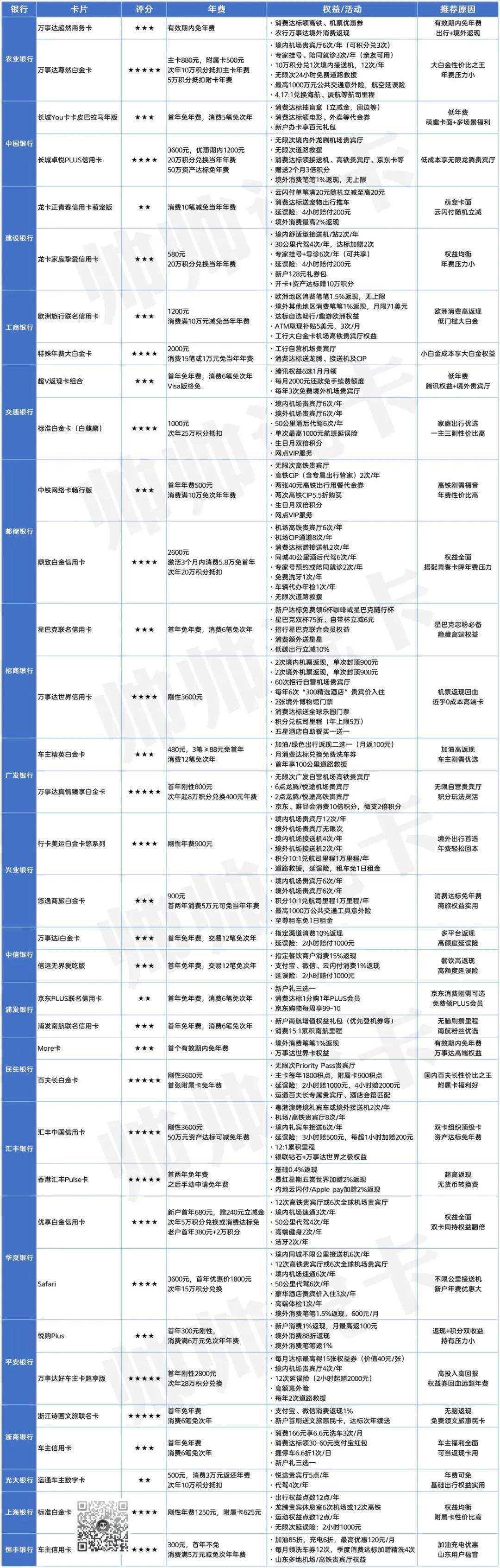 当然,受篇幅所限,这份推荐没法做到面面俱到,很可能会漏掉你心中的“宝藏好卡”。所以欢迎小伙伴们在留言区分享自己的用卡心得和私藏卡片,咱们群策群力,让更多小伙伴都能在这篇攻略里,找到最适配自己的那张卡!