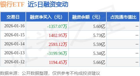 证券之星消息,1月16日,银行ETF(512800)融资买入1.36亿元,融资偿还1.5亿元,融资净卖出1357.07万元,融资余额5.6亿元,近20个交易日中有12个交易日出现融资净买入。
