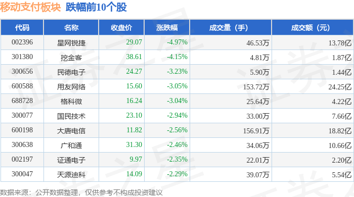 从资金流向上来看,当日移动支付板块主力资金净流出38.3亿元,游资资金净流入13.68亿元,散户资金净流入24.62亿元。移动支付板块个股资金流向见下表: