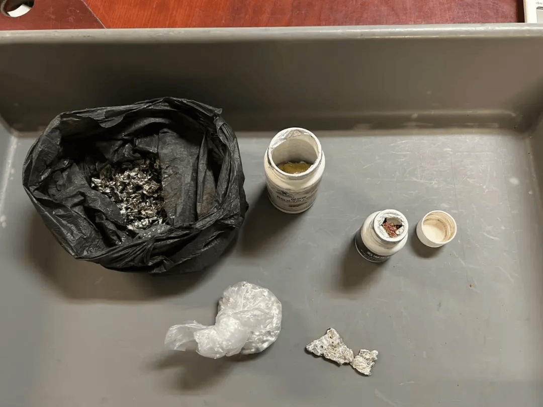 广州海关所属广州白云机场海关关员对一架进境航班进行监管时,发现一名选择“无申报通道”通关的旅客所携带的行李机检图像异常。现场关员随即拦截并进一步查验,在该旅客行李箱中发现用黑色塑料袋包裹的保健品罐和药罐,罐子表面带有明显污渍和使用过的痕迹,里面装有金黄色和银白色的可疑金属颗粒。经送技术机构鉴定,确认上述金属为纯度较高的金、银半成品,包括黄金金块199克、金砂174克、白银902克,总重1275克。旅客自述携带上述物品进境是为进一步提纯变卖谋利。