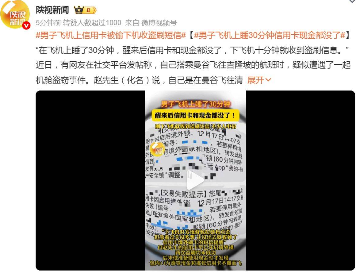 仅仅闭眼休息了半小时,包里的现金和信用卡就“长翅膀”飞了。近日,一名中国游客在社交平台分享了自己在东南亚航班上的惊魂遭遇,引发了出境游群体对飞行防盗与金融安全的集体警觉。