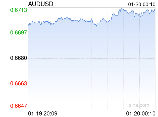 新浪外汇消息2026年01月20日,截至00时10分,外汇市场上澳元兑美元汇率突破1澳元兑换0.6714美元。涨幅为0.5090%