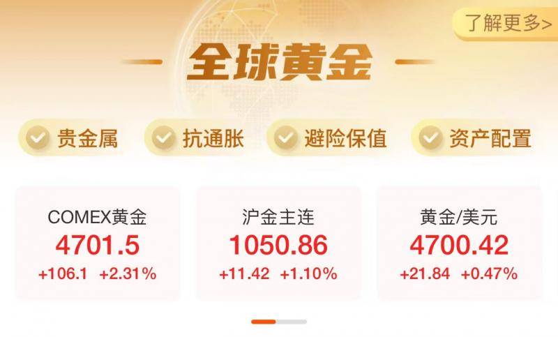截至北京青年报记者发稿时,现货黄金与COMEX黄金期货双双涨超4700美元大关。