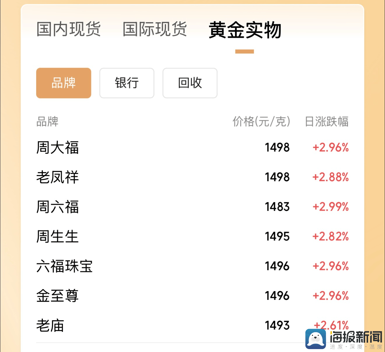随着国际金价再破新高,国内黄金首饰市场迎来历史性一刻。1月21日午间,中国黄金品牌报1506元/克,突破1500元/克大关。除中国黄金外,国内多家头部品牌金饰报价也即将触及1500元/克关口。当日,周生生品牌金饰价格较前一日1454元/克的价格上涨41元,报1495元/克;老凤祥足金饰品报1498元/克,较1月20日1456元/克涨42元/克;老庙黄金足金饰品报1493元/克,较1月20日1455元/克涨38元/克;六福珠宝、金至尊报1496元/克。