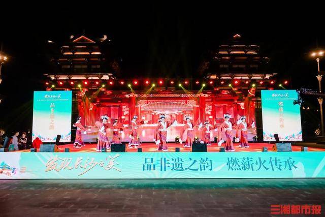 当晚,夜幕下的铜官窑国风乐园飞檐翘角映照着璀璨灯火,千年窑火与现代光影交相辉映,《锦绣华夏》《狮舞湘韵》等充满非遗韵味的节目轮番上演,为现场观众带来穿越古今的视听盛宴,让大家沉浸式感受传统文化与现代艺术的碰撞之美。