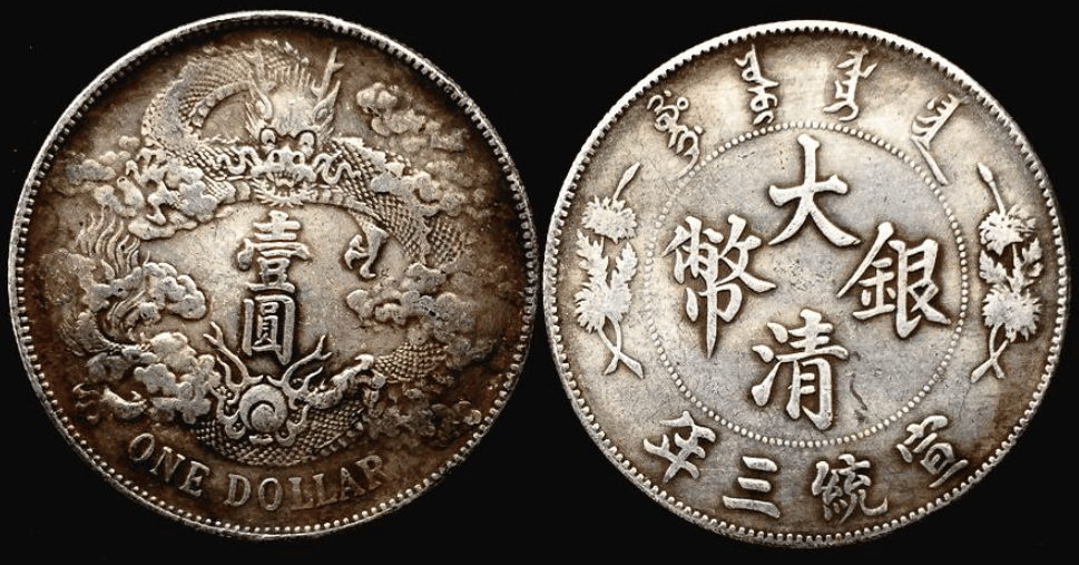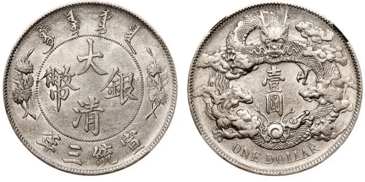 辛亥革命爆发,因而短时间便随同其制定者被推翻而告废止。各等铸币,除普通“曲须龙”一元银币及十文铜元在民国初年被应需而大量铸造外,余皆所出无多。在钱界也是名誉颇具,历来为中国银币收藏的倾心之选。宣统三年大清银币长须龙版,极为珍罕。