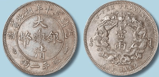 湖北省造大清银币双龙一两银币 小字版成交价:RMB 402,500