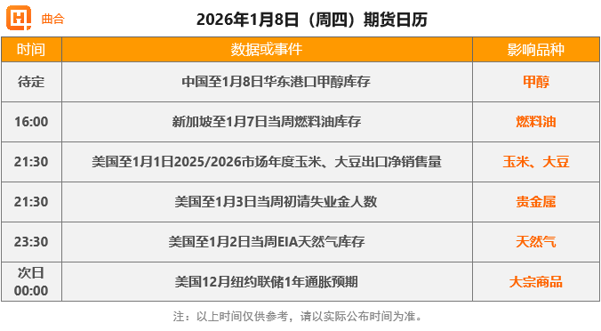 玻璃:截止到2026年01月08日,全国浮法玻璃样本企业总库存5551.8万重箱,环比下降134.8万重箱或2.37%,同比增加27.04%。折库存天数24.1天,较上期-1.5天。(隆众资讯)