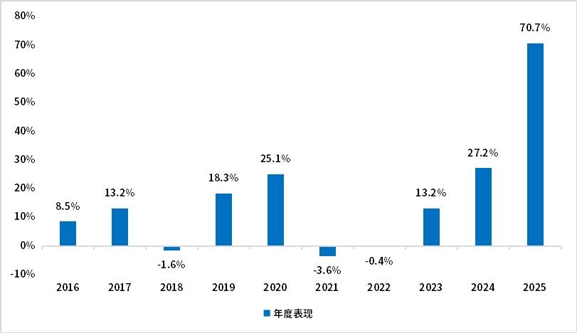 2025年以来,黄金资产大幅上涨超过70%,背后受多种因素驱动,此番创历史新高,并非单一数据或短期事件驱动,而是美国货币政策进入降息周期后市场中长期再定价的必然结果。通胀回落为宽松政策提供支撑,就业与需求放缓削弱实际利率回升基础,推动市场聚焦2026年降息节奏与终点利率;叠加美元利差收窄、财政与金融周期不确定性上升,黄金货币属性及风险对冲价值凸显。同时,央行购金与ETF配置资金形成结构性需求,为金价构建"下有支撑、上有弹性"的格局。