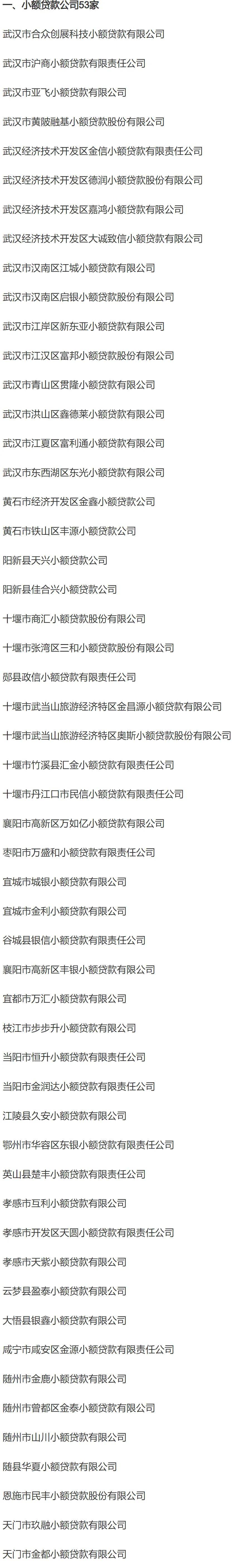 12月29日,湖北省金融办公示133家拟退出“失联”“空壳”地方金融组织,其中小贷公司53家。