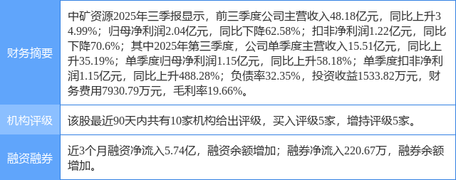 2025年10月30日,民生证券研究员邱祖学,南雪源发布了对中矿资源的研报《2025年三季报点评:Q3扭亏为盈,铜锗项目投产在即》,该研报对中矿资源给出“买入”评级。研报中预计公司2025-2027年归母净利4.6、12.2和36.3亿元,对应10月29日收盘价的PE为85、32和11倍,维持“推荐”评级。证券之星数据中心根据近三年发布的研报数据计算,该研报作者对此股的盈利预测准确度为57.36%。