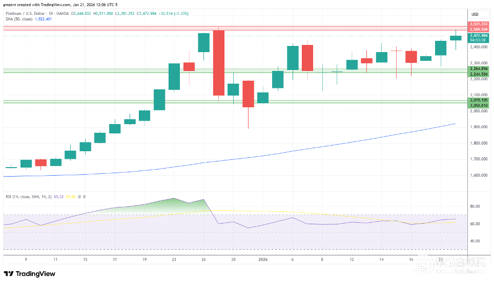 从技术面看,铂金价格需要突破2510至2530美元阻力位,才能获得进一步上涨的动力。