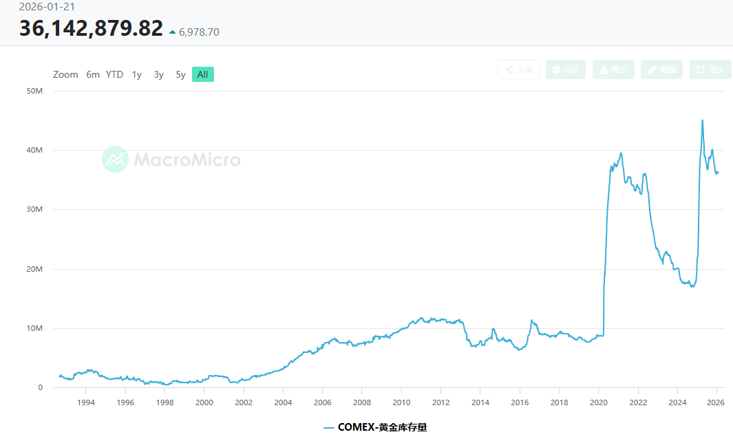 且COMEX黄金期货交易量居全球首位,并以机构投资者为主导,其库存数据就是全球定价的核心锚点,尽管实物交割量仅占总交易量的2%,但交割规则为价格提供了实物背书,使COMEX价格对伦敦现货、上海T+D市场形成牵引。