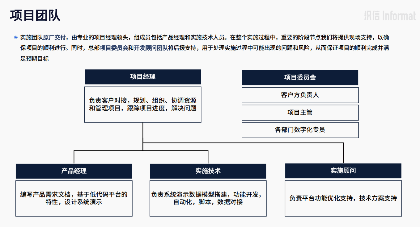 企业领导层、核心小组(项目负责人)、技术小组、最终用户。