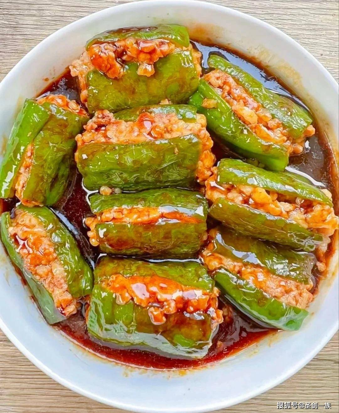 1. 肉末加葱姜末、生抽、淀粉搅匀,青椒去籽切段,塞入肉馅。