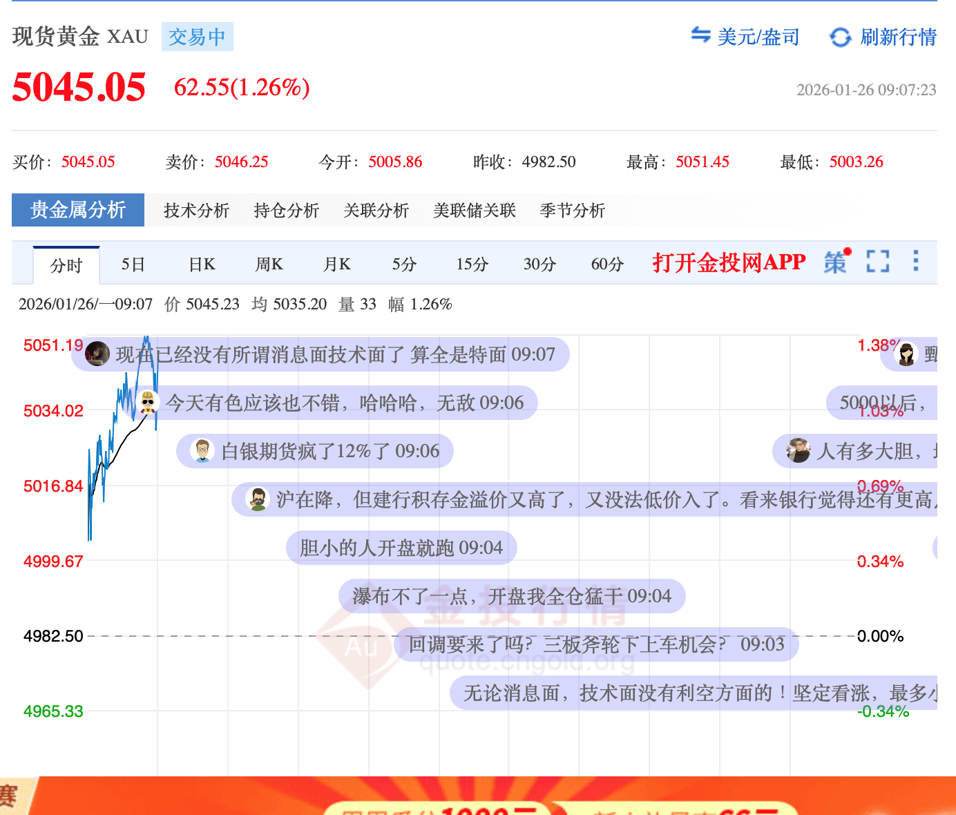 1月26日,亚市早盘破5000美元/盎司