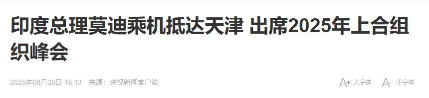 参考资料: 《印度总理莫迪乘机抵达天津 出席2025年上合组织峰会》2025年08月30日 来源:央视新闻客户端 《特朗普政府拟对印度商品征收50%关税》2025年08月26日 来源:央视新闻