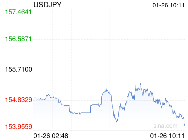 新浪外汇消息2026年01月26日,截至10时11分,外汇市场上美元兑日元汇率跌破1美元兑换154.1100日元。跌幅为-1.0275%