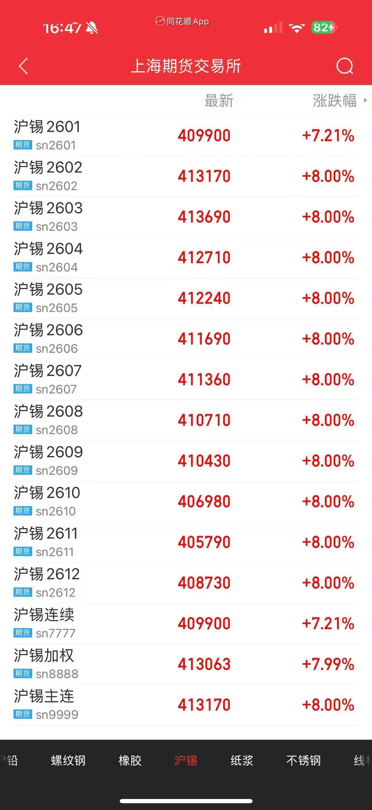 记者关注到,自去年12月以来,上海期货交易所针对有色金属和贵金属品种价格波动,多次发布风险提示和风控举措,引导市场理性参与。上海期货交易所在2025年12月12日、2026年1月7日先后发布通知,调整锡期货品种相关合约交易手续费。