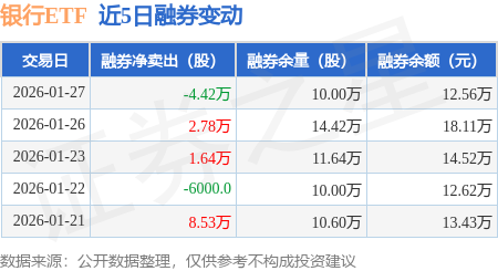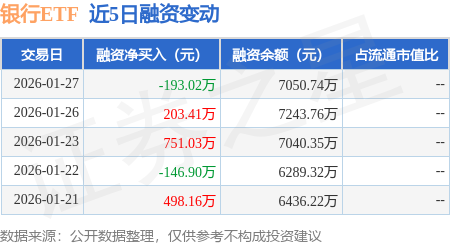 证券之星消息,1月27日,银行ETF(159887)融资买入2029.65万元,融资偿还2222.67万元,融资净卖出193.02万元,融资余额7050.74万元,近20个交易日中有11个交易日出现融资净买入。