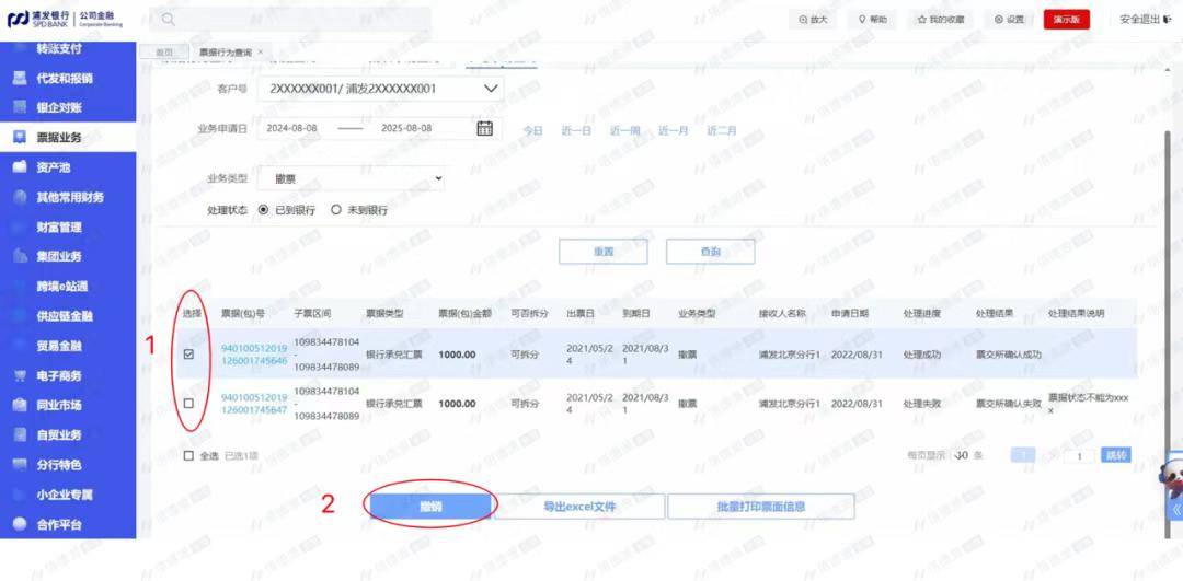 只要是符合条件可供撤销的新一代票据,都会在列表中显示出来。选择需要撤销的票据,再点“撤销”。