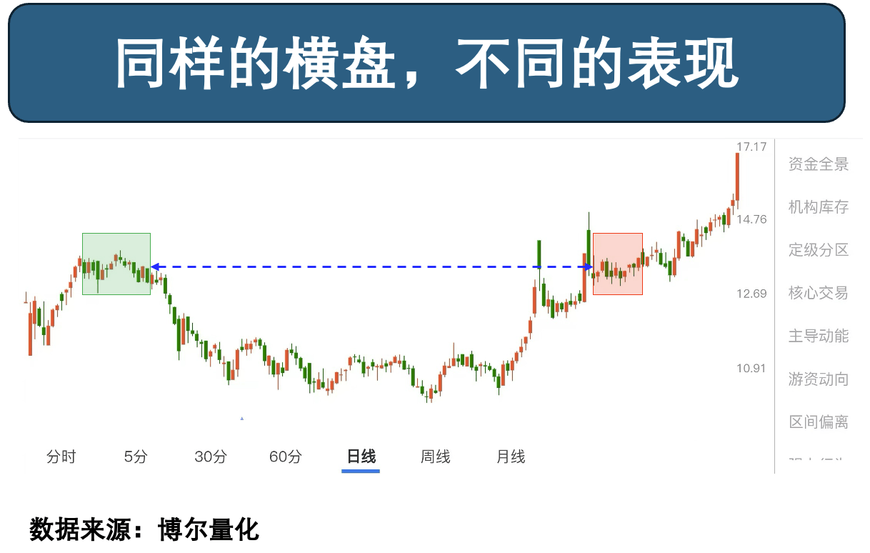 其实市场没疯,是我们“把表面当本质”了。就像这只股票(看图1),前期有个绿色框的平台,两次冲高都回落,大家都觉得是“阻力位”,不敢碰。可后来它反而突破涨上去了——不是“阻力位”消失了,是我们没看到背后的“关键变量”:机构大资金的交易行为。