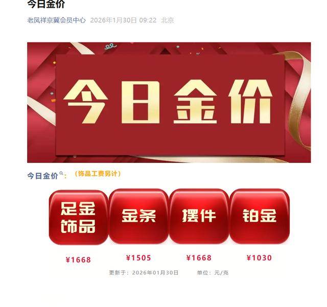 受此影响,国内品牌金饰价格也有所回落。中新经纬30日查询发现,周生生足金饰品报1662元/克,较前一日1708元/克大跌46元;老凤祥足金饰品报1668元/克,较前一日1713元/克跌45元;老庙黄金足金饰品报1690元/克,较前一日1706元/克跌16元。