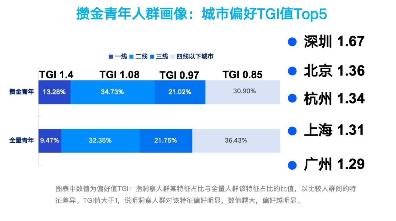 数据显示,在该群体中,女性用户TGI偏好指数达1.55,显著高于男性;整体消费能力较强,高消费水平人群占比约为全量青年群体的1.92倍。