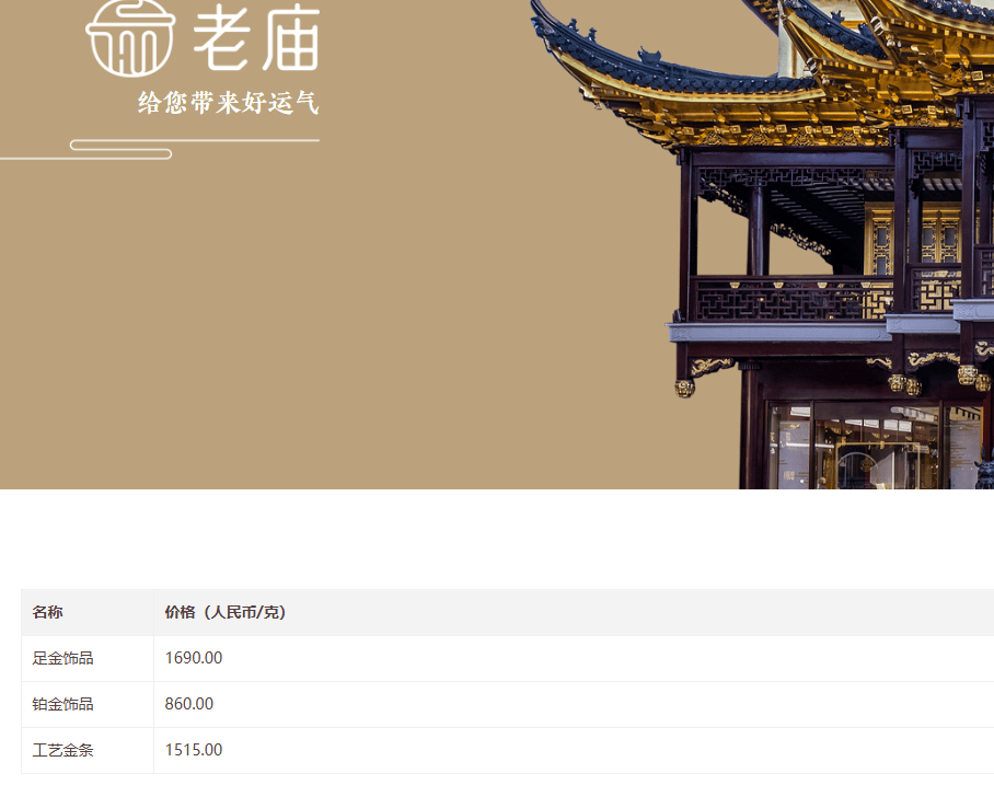周大福报价1685元/克,老庙黄金报价1690元/克,周生生报价1662元/克,老凤祥报价1668元/克。