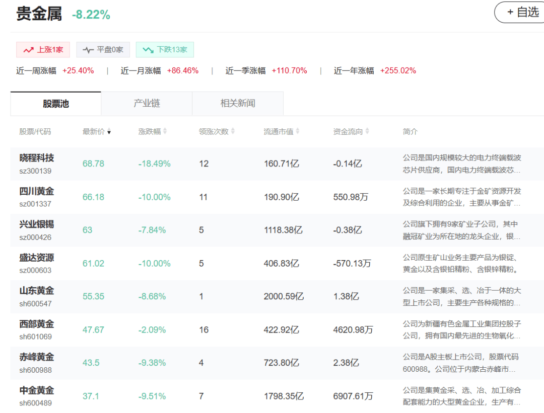 1月30日A股早盘,贵金属板块集体低开,中金黄金、白银有色、豫光金铅、招金黄金、四川黄金、湖南白银跌停,晓程科技低开超19%,山金国际、赤峰黄金、西部黄金等跌幅靠前。