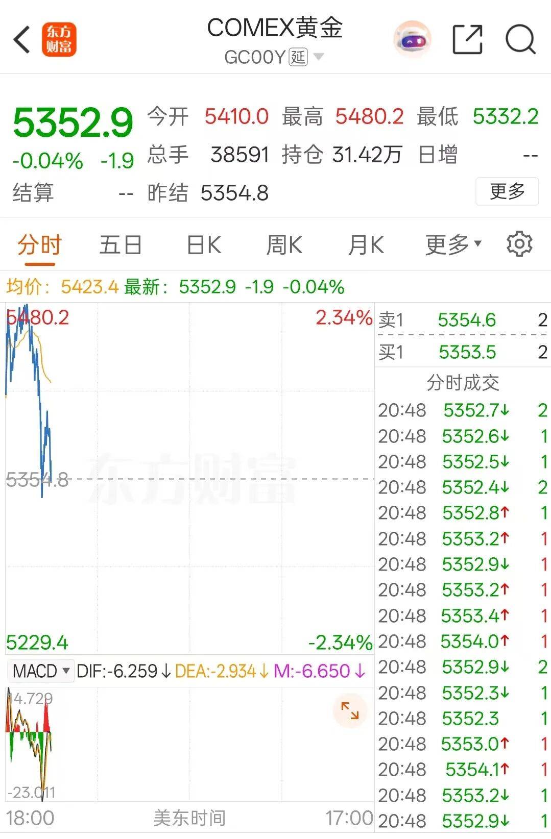 消息面上,早盘现货黄金、现货白银一度跳水跌超1%。