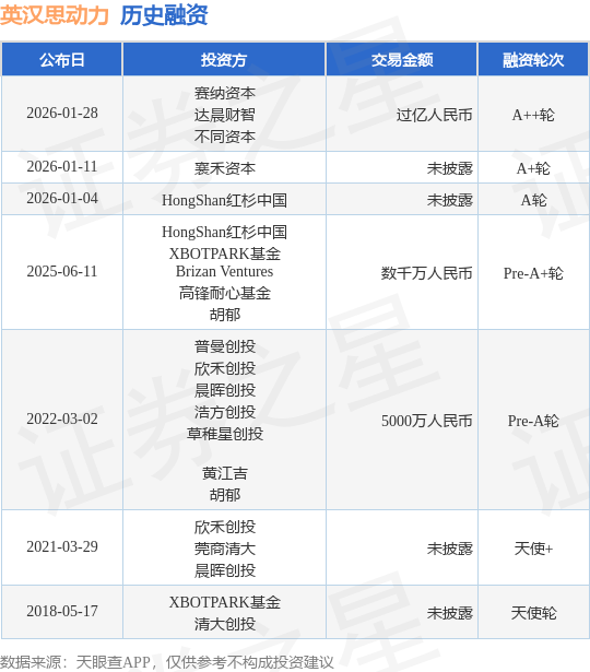 证券之星消息,根据天眼查APP于1月28日公布的信息整理,深圳市英汉思动力科技有限公司A++轮融资,融资额过亿人民币,参与投资的机构包括赛纳资本,达晨财智,不同资本。