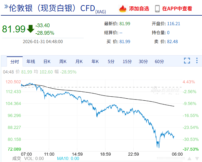 北京时间1月31日凌晨,恐慌性抛售席卷全球贵金属市场。